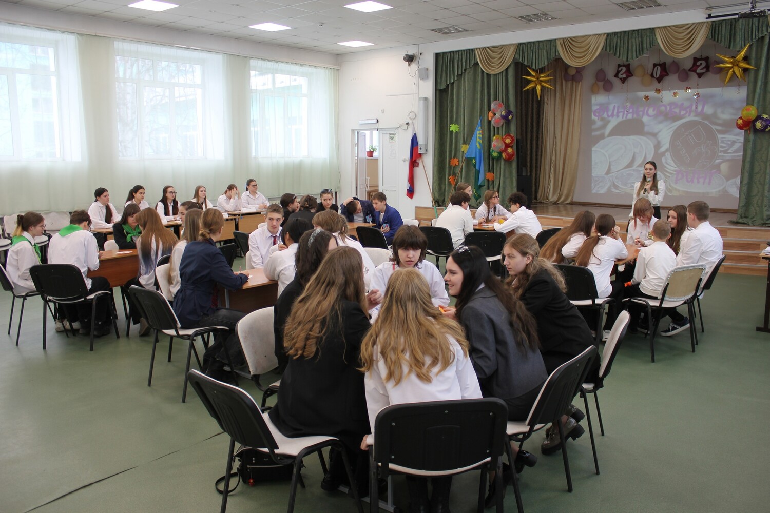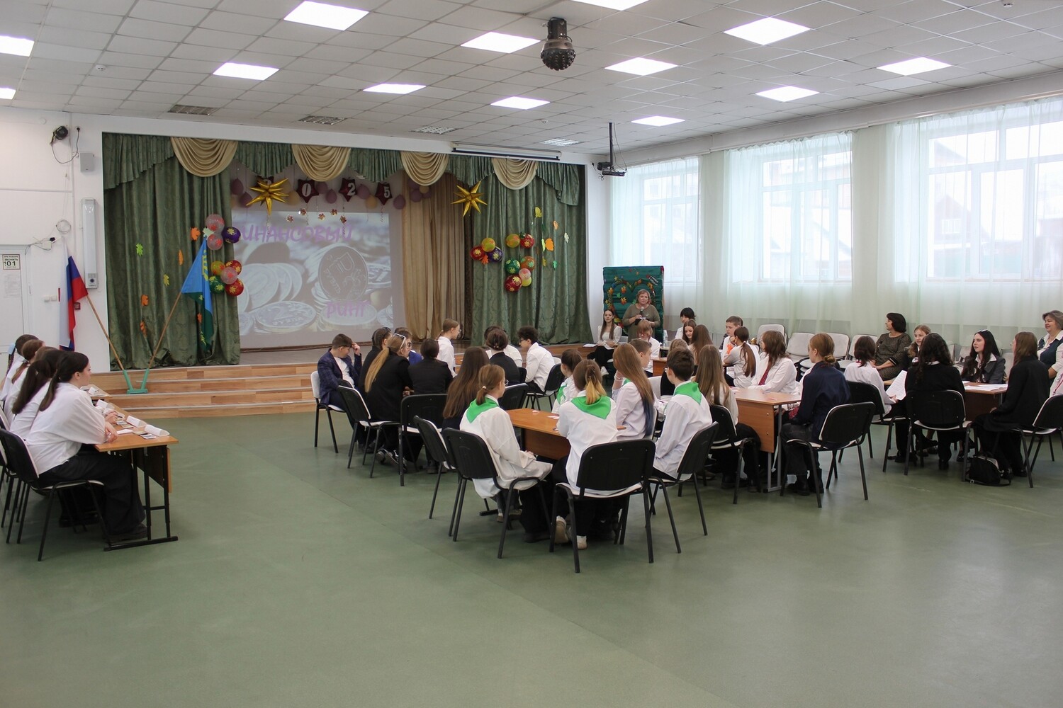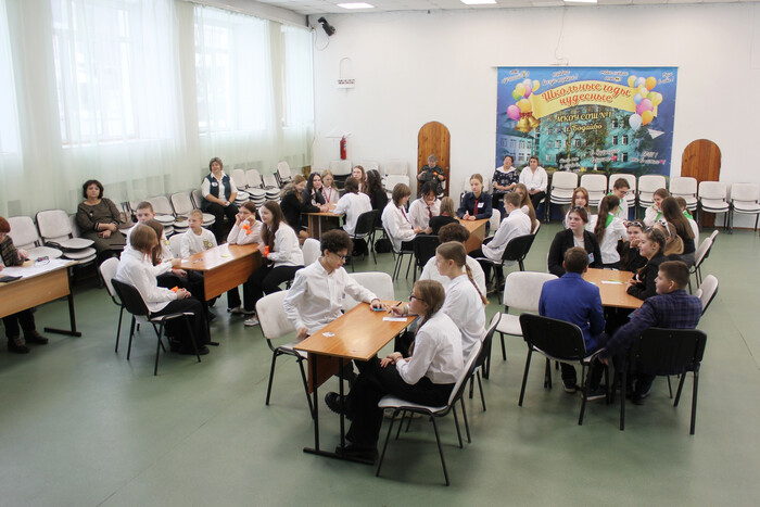 Ребята вместе со своими руководителями - учителями математики собрались в актовом зале школы.