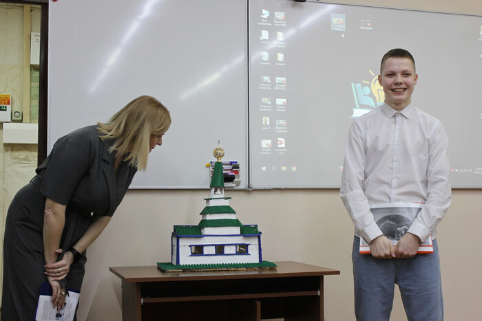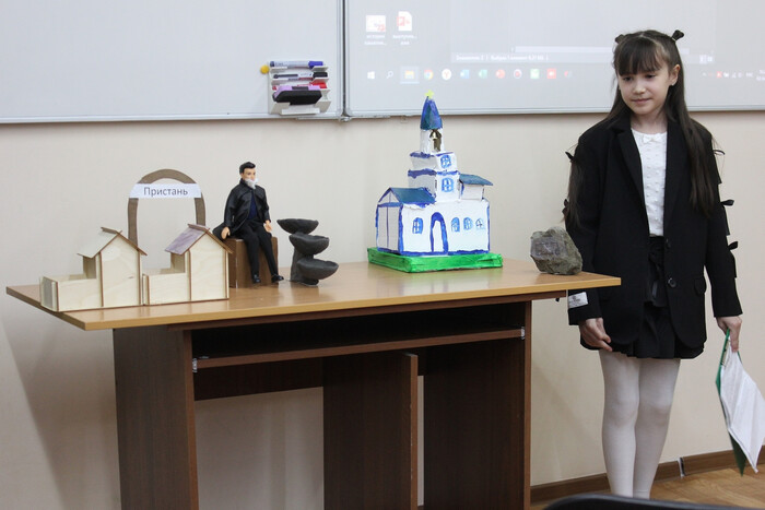 Отдельный блок был посвящён 150-летнему юбилею Храма Рождества Христова - к этой дате школьники готовились особенно тщательно. Говорили и о памятнике воинам Бодайбинского района, и об улицах родного города, и о людях, которые прославили край.