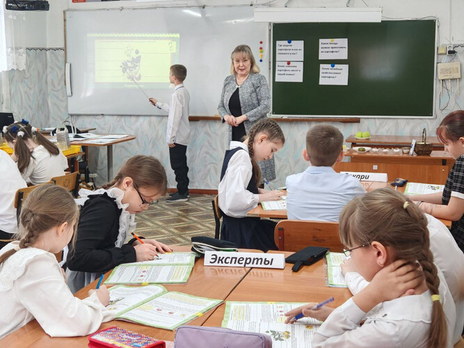 25 февраля на базе МКОУ «Мамаканская СОШ» был проведен муниципальный семинар в рамках районного методического объединения учителей начальных классов по теме: «Формирование функциональной грамотности в урочной и внеурочной деятельности в начальной школе», на нем присутствовали 9 педагогов из двух образовательных организаций города и района. В программе встречи гости посетили два внеклассных мероприятия учителей начальных классов: Ольга Олеговна Кармадонова провела в 1 классе занятие по читательской грамотности по теме: «Сказка В. Бианки «Лис и мышонок», во время которого первоклассники учились читать сказку по ролям, обсуждали поступки героев, работали в рабочих тетрадях и выполняли задания по формированию читательской грамотности, делились впечатлениями о смысле прочитанной сказки. Любовь Тихоновна Ляпунова пригласила на занятие в 4 классе по теме: «Картофель», четвероклассники поделились на четыре команды: историки, эксперты, кулинары и лекари. Каждая команда приготовила очень интересный и познавательный материал о картофеле, рассказали о происхождении овоща, поведали историю появления его в России. Обучающиеся узнали о том, как использовать картофель в медицинских целях, как выбирать сорта для приготовления определенных блюд в зависимости от содержания крахмала. Ребята исследовали свойства популярного овоща, столько нового узнали в ходе занятия, работали дружно и продуктивно, развивая читательскую, финансовую и естественнонаучную грамотность. В теоретической части семинара учителя приняли участие в проведении мастер-класса по теме: «Приемы формирования функциональной грамотности в начальной школе», который провела Анна Николаевна Кормишина — учитель начальных классов. Она продемонстрировала разные приемы, которые можно использовать на уроках литературного чтения, математики и окружающего мира для формирования разных видов функциональной грамотности в начальной школе. Далее Оксана Леонидовна Бельская — директор школы и учитель английского языка в начальных классах выступила и подробно охарактеризовала, как педагоги работают над формированием функциональной грамотности у младших школьников. В школе в 1-4 классах по одному часу в неделю ведется внеурочный курс по функциональной грамотности, обучающиеся работают в рабочих тетрадях и успешно осваивают программный материал. Молодой педагог Екатерина Витальевна Кочнева — учитель начальных классов провела открытый урок математики в 3 классе по теме: «Внетабличное умножение и деление». Ребята разделились на три команды и зарабатывали деньги за правильное решение примеров и задач, в игровой форме было интересно обучать учеников финансовой грамотности, урок был интересным и насыщенным. Подводя итоги мероприятия, гости поблагодарили учителей начальных классов Мамаканской школы за проведение хорошего и полезного семинара. | |