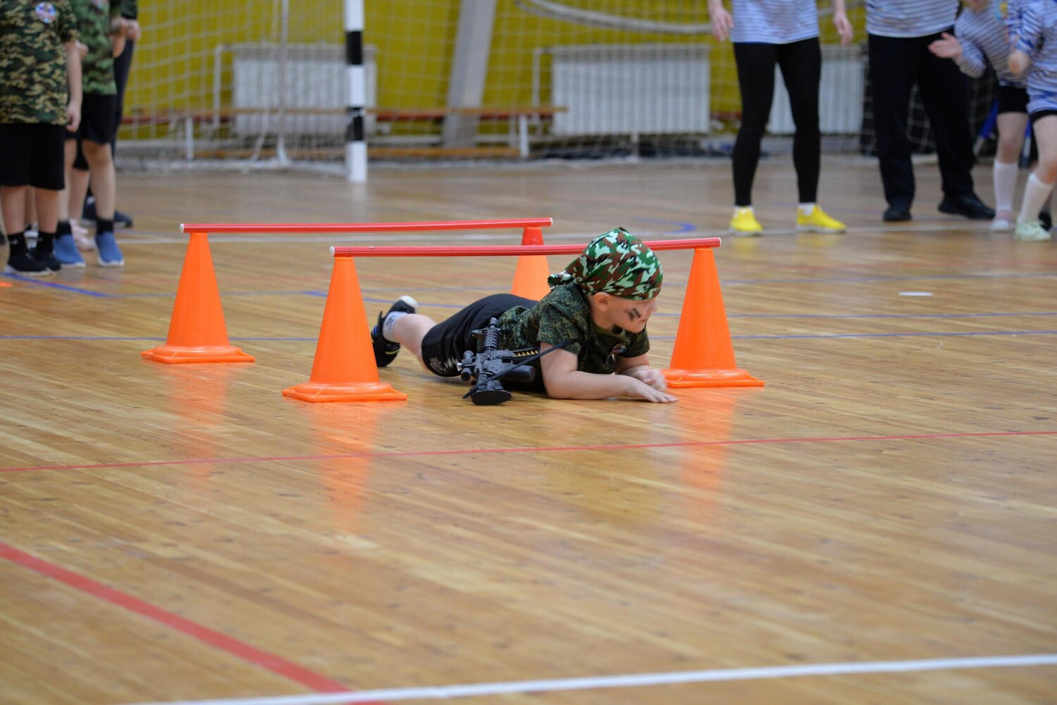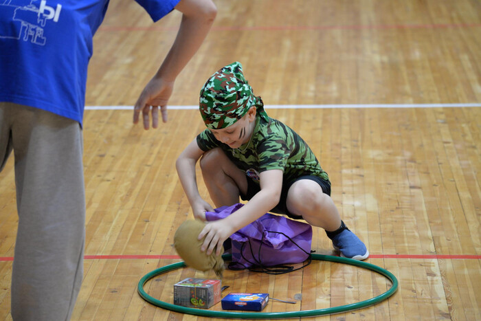 Далее участников ждали более активные испытания. Самым метким в конкурсе «Меткий стрелок» оказалась команда «Защитники России» из детского сада № 5 «Брусничка». В конкурс «Осенний караул» участникам нужно было проползти под сеткой, обойти кегли, добежать до пилотки, надеть ее и громко крикнуть: «Служу России!». Здесь отличилась команда «Голубые береты» из МКОУ «НОШ г. Бодайбо». Скорость и слаженность требовались от  участников в конкурсе «Полевая кухня»: добежать до обруча, взять один предмет из «пайка» (вещмешок, тушенка, фляжка, гречка, кружка и др.) и вернуться в команду. Победу одержали «Бравые моряки» из детского сада № 1 «Золотой ключик», собравшие весь «паёк» быстрее всех. Испытание «Шифровка» проверило интеллектуальные способности участников. Настоящую семейную слаженность продемонстрировала команда, где дети выполняли свое задание, а родители тем временем ломали голову над секретным кодом. Команды «Спецназ» детского сада № 32 «Сказка» и команда «Защитники России» из детского сада № 5 «Брусничка» показали прекрасные способности к логическому мышлению и слаженную командную работу. Заключительный конкурс – «Полоса препятствий» стал настоящим экзаменом на ловкость, силу и взаимопомощь. Участникам нужно было проползти по скамейке, пройти змейкой между стойками, «минировать» и «разминировать» мешочки, оббежать стойку и вернуться. «Бравые моряки» из детского сада № 1 «Золотой ключик»  оказались быстрее всех.